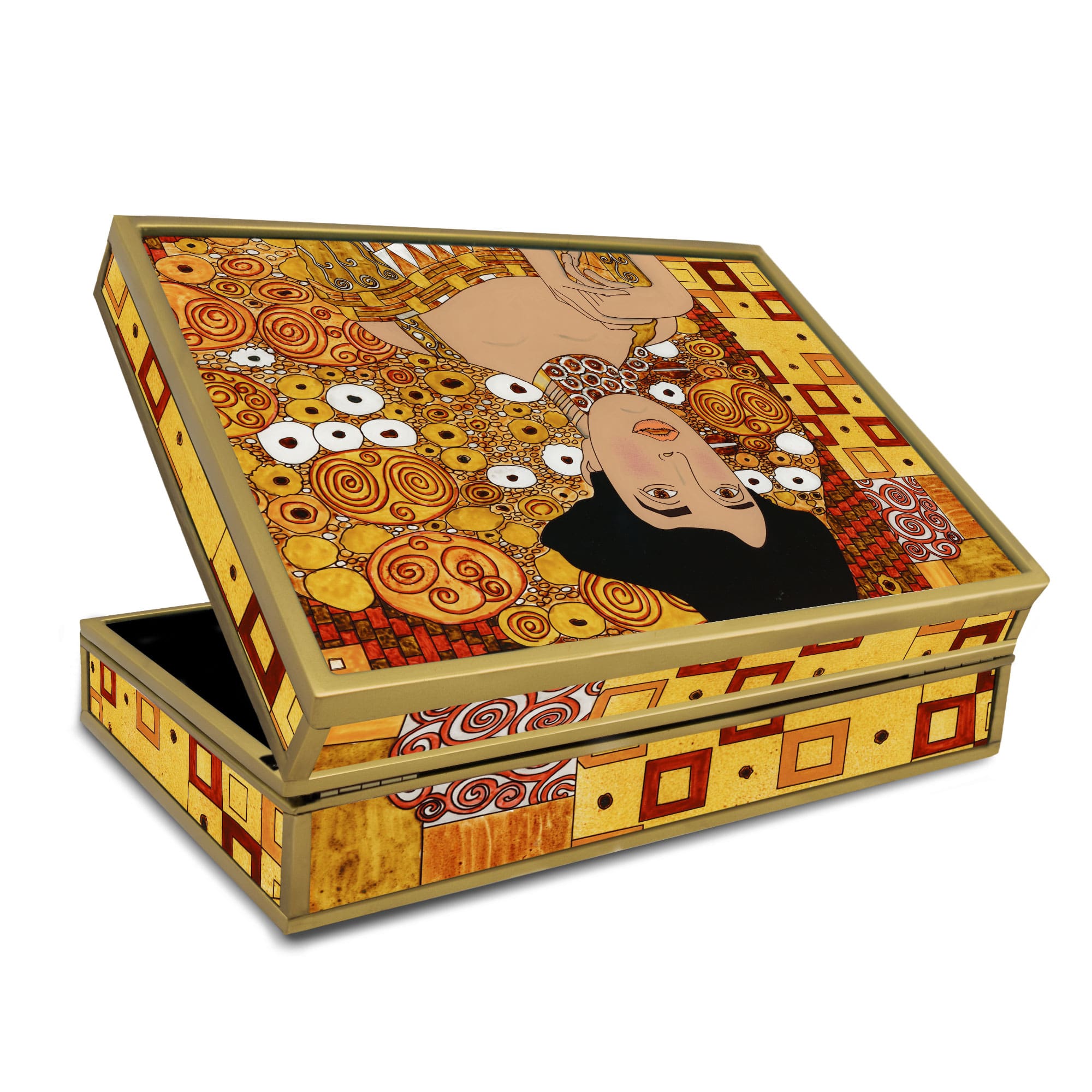 Beautiful 90° stop hinges, hi-gloss varnish shine, black felt, black acrylic compartments, silicon bumpers under the lid and at the bottom of the chest. Many details that makes the product quality outstanding
