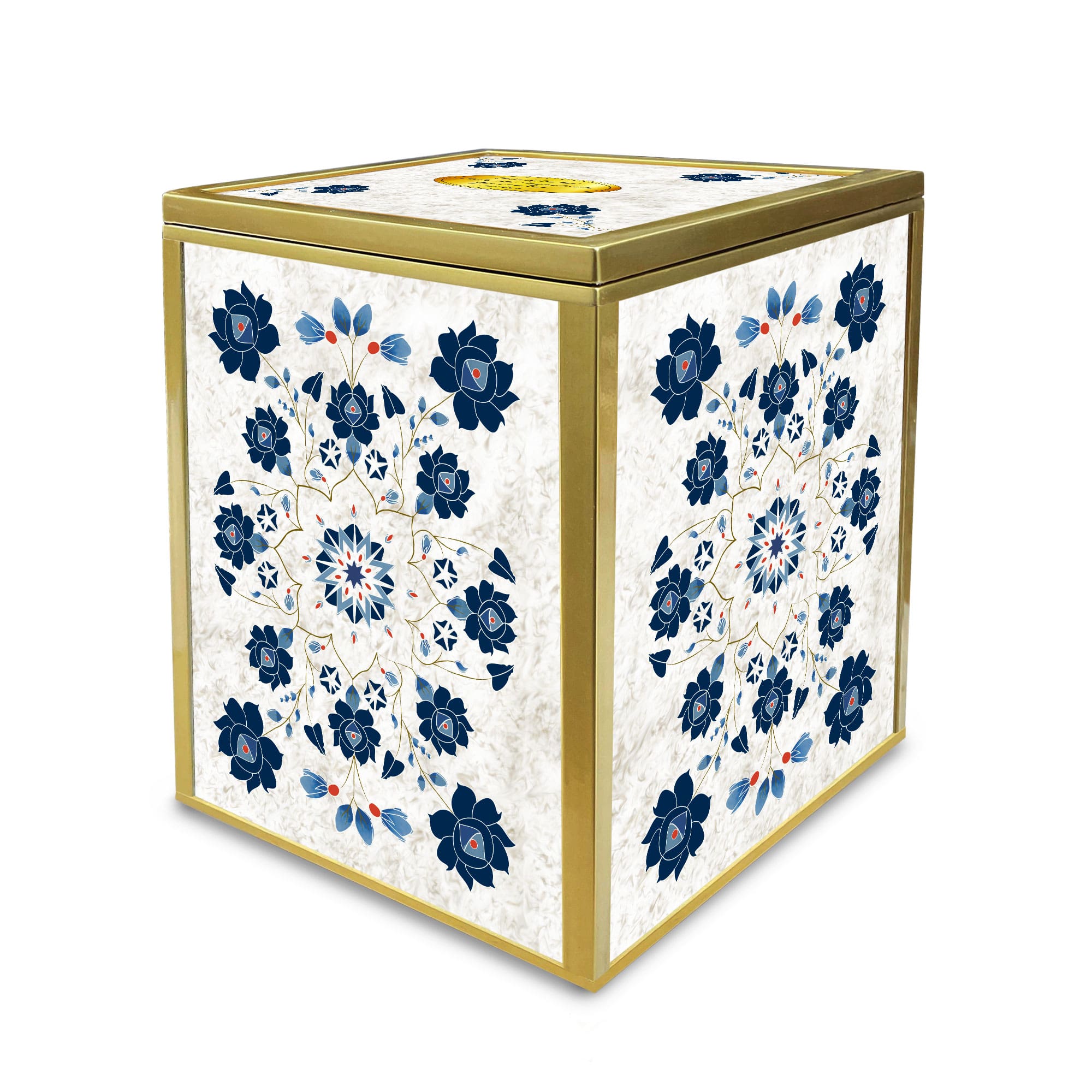 This large memorial container embodies elegance and resilience. Made with a highly resistant frame and adorned with 4mm glass pieces, it showcases reverse painting on glass and the timeless églomisé technique. Crafted in Paris, France, by skilled artisans, this urn reflects unmatched artistry and attention to detail.